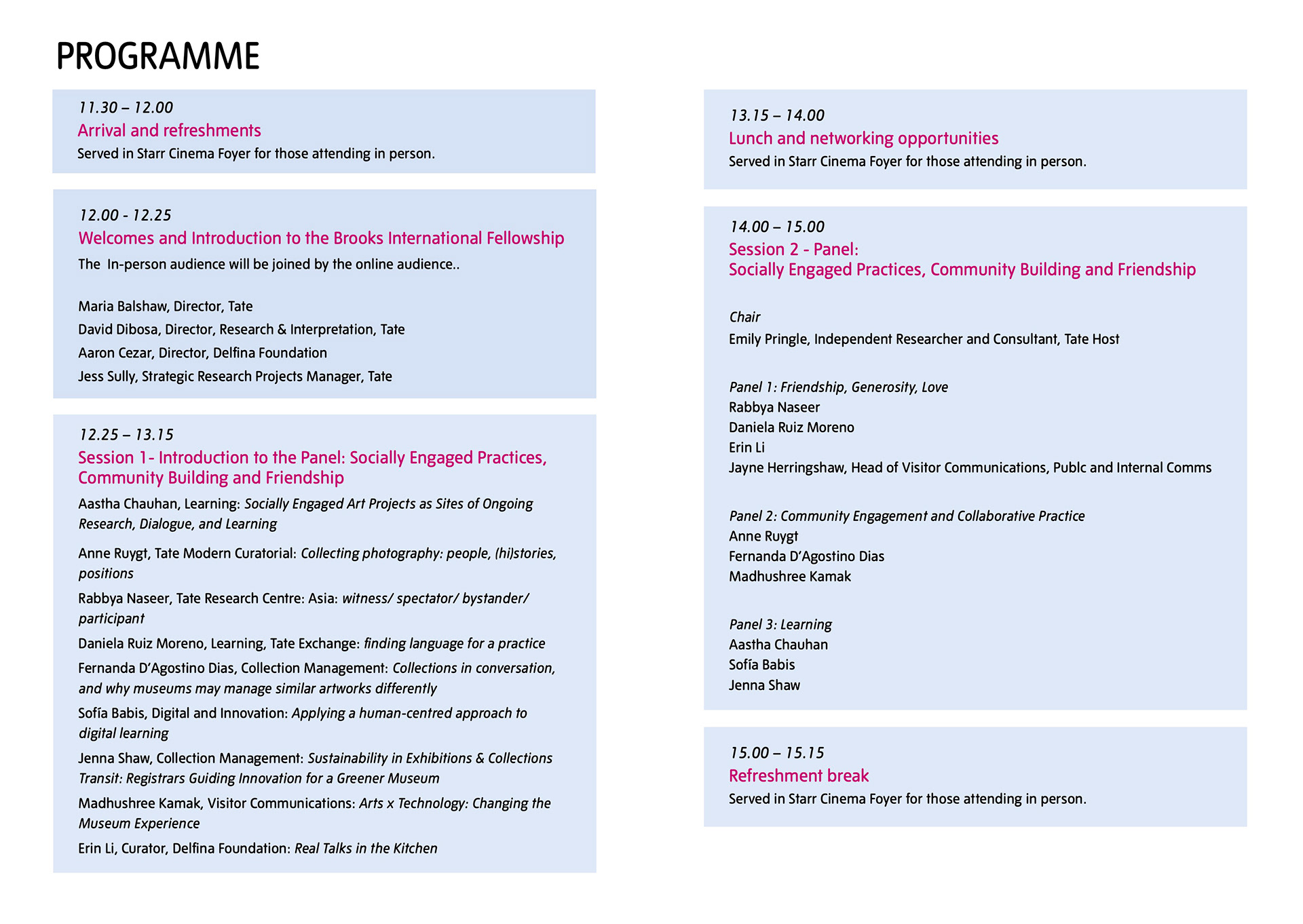 In January 2025, I curated a major symposium at Tate Modern to share research and emerging thinking from a decade of Tate’s Brooks International Fellowship Programme.