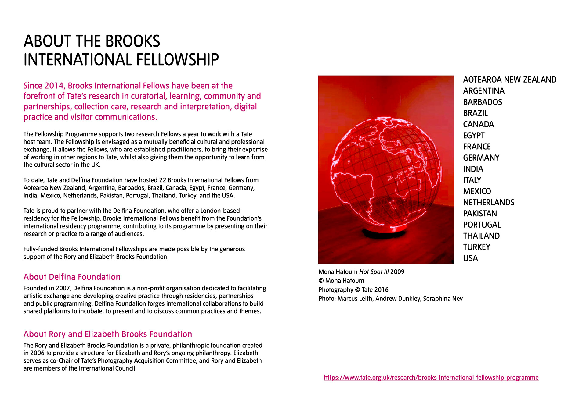 Since 2014, Brooks International Fellows have been at the forefront of research at Tate, showcasing the range of research activity taking place across the organisation. This event brought together former Fellows from across the world and those who have hosted them at Tate and Delfina Foundation.